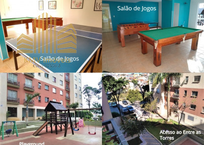Lazer com salao de festas, salão de jogos, brinqudoteca, playgroud.