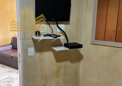 Apartamento com 1 dormitório, 1 vaga de garagem coberta, cozinha, sala ampla.