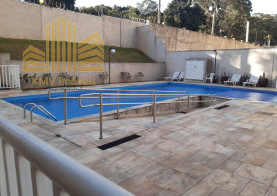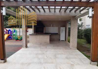 Lazer com piscina adulto e infantil, salão de festas, quadra, playground.