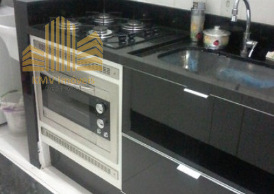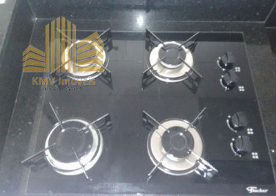 Cozinha planejada com bancada e fogão embutido