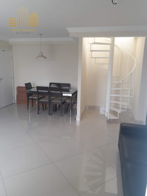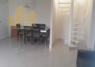 Cobertura Duplex com 2 dormitórios com armários sendo 1 suite, sala ampla 2 ambientes, cozinha com armários,e 2 vagas de garagem, area superior com sala de TV, area externa com churrasqueira e jacuzi.