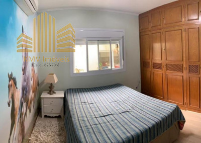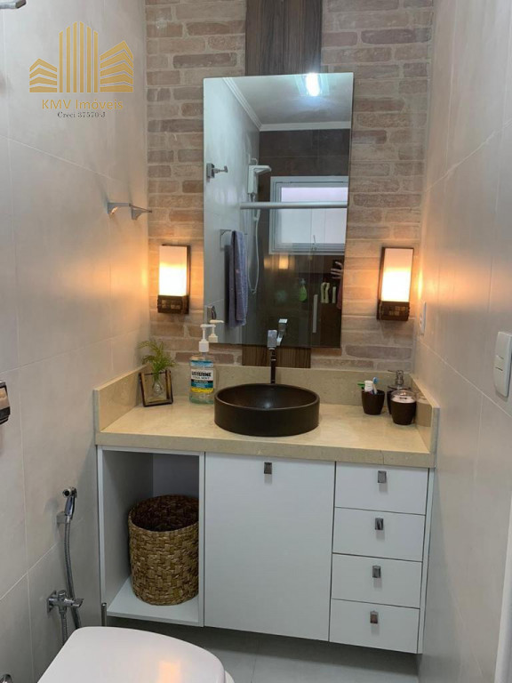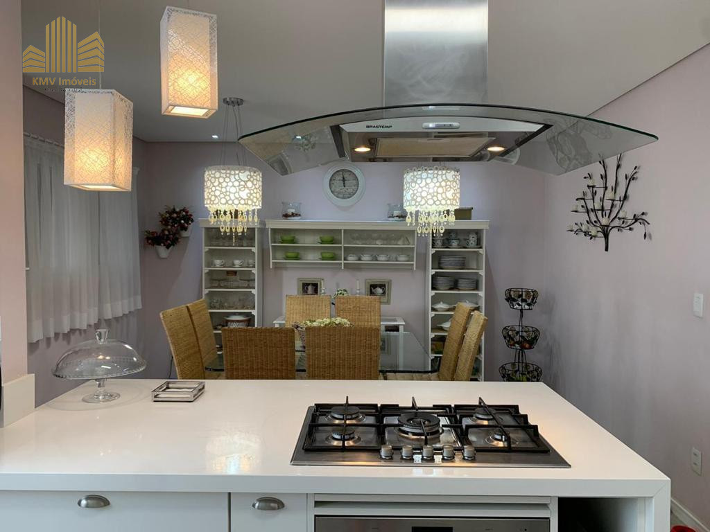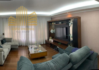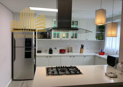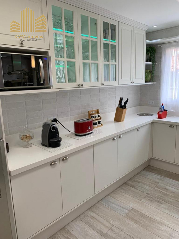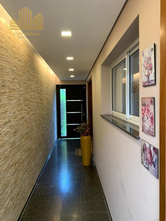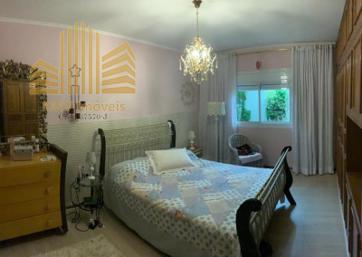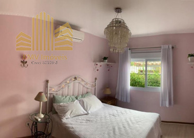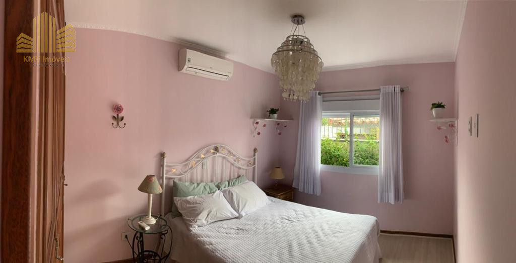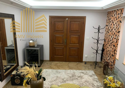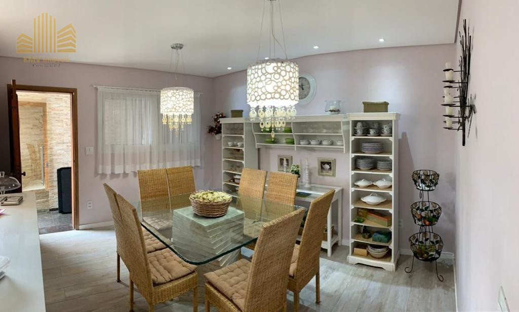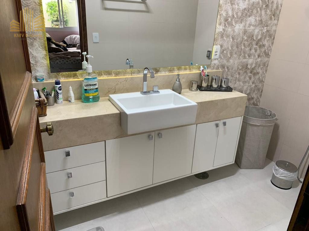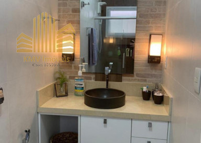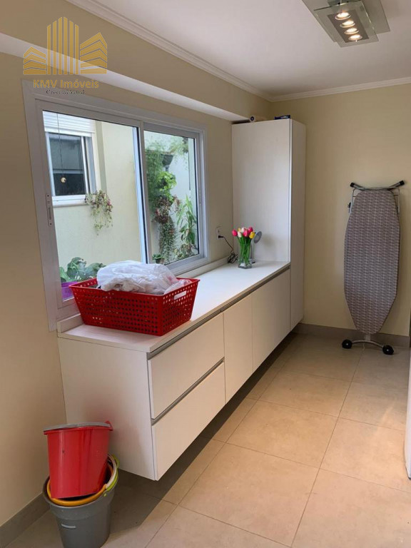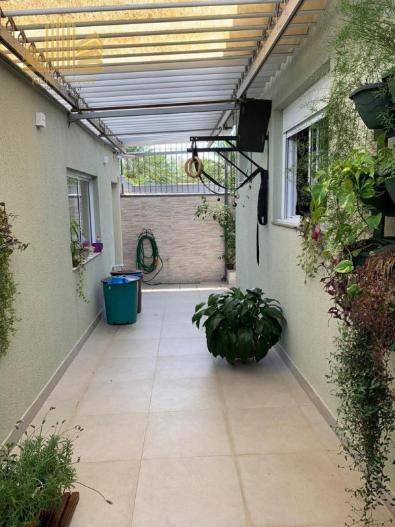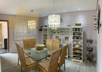A propriedade é uma casa assobradada não geminada. Na parte superior, conta com quatro dormitórios, sendo dois suítes, além de um hall de entrada em granito. A sala de TV é revestida com tablado de madeira e há também uma sala de jantar, uma copa e uma cozinha planejada. O banheiro atende aos dois quartos restantes e há um lavabo adicional.