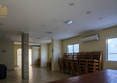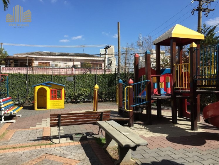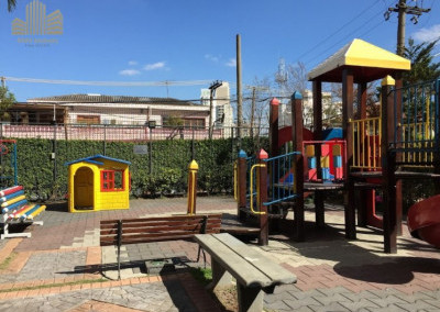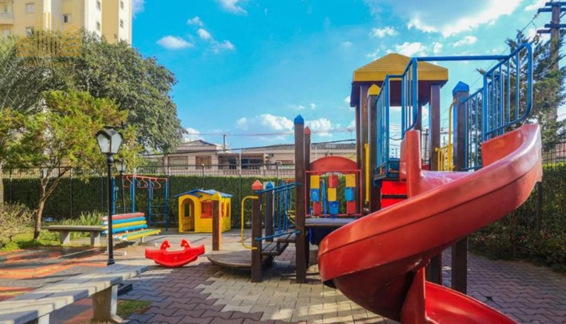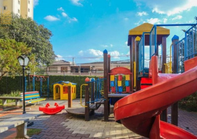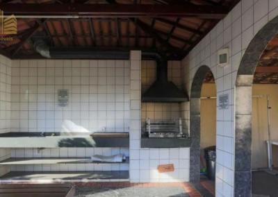 Lazer com churrasqueira, salão de festas, quadra, salão de jogos, playground.
