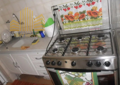 A cozinha tem bastante armário e a área de serviço possui bom tamanho e boa ventilação.