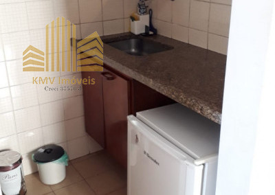 Apartamento com 1 dormitorio, 1 suite, sala com sacada e cozinha.