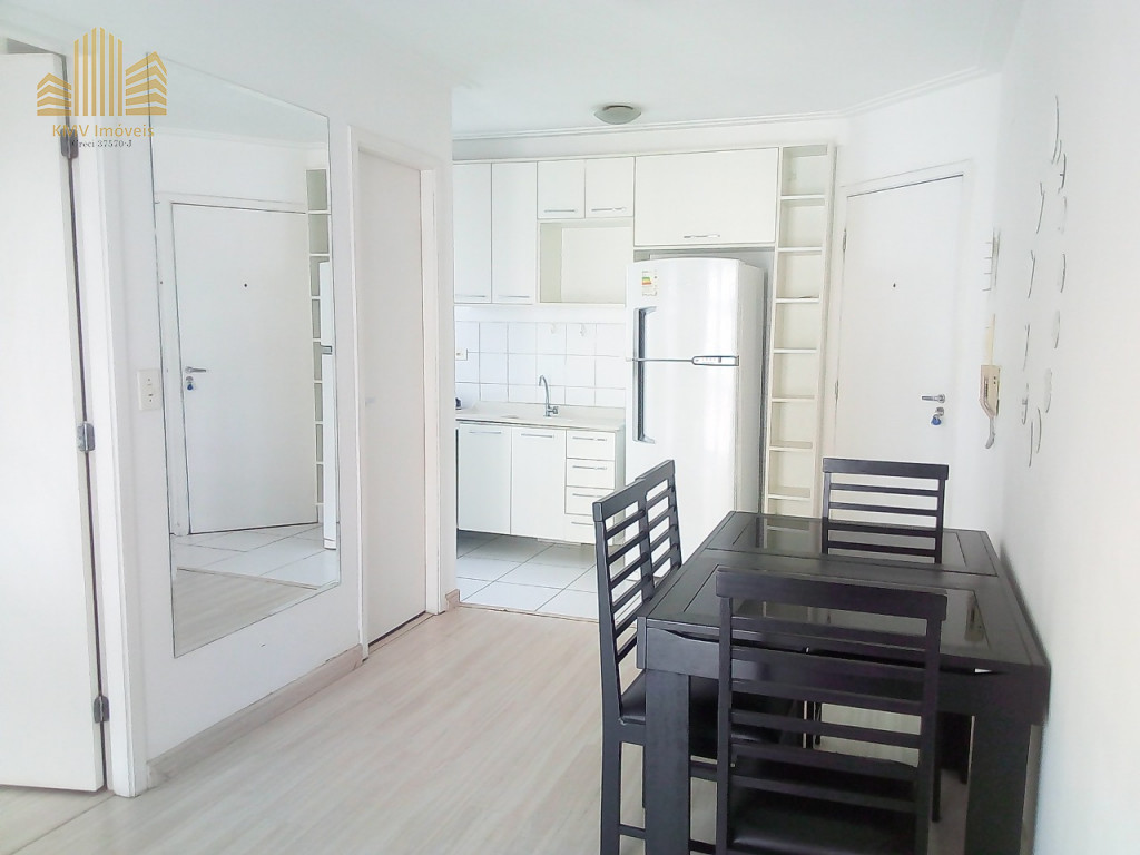 O apartamento no bairro Cambuci com 38 metros quadrados com 1 quarto com armários, sala ampla com sacada, painel e mesa com 4 cadeiras, cozinha ampla com armários, fogão e geladeira, 1 banheiro com box de vidro, area de serviço com maquina de lavar roupas e com armários.
