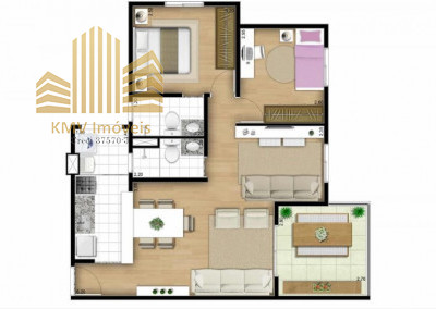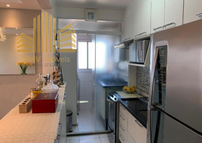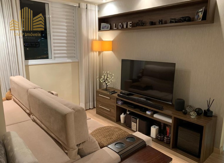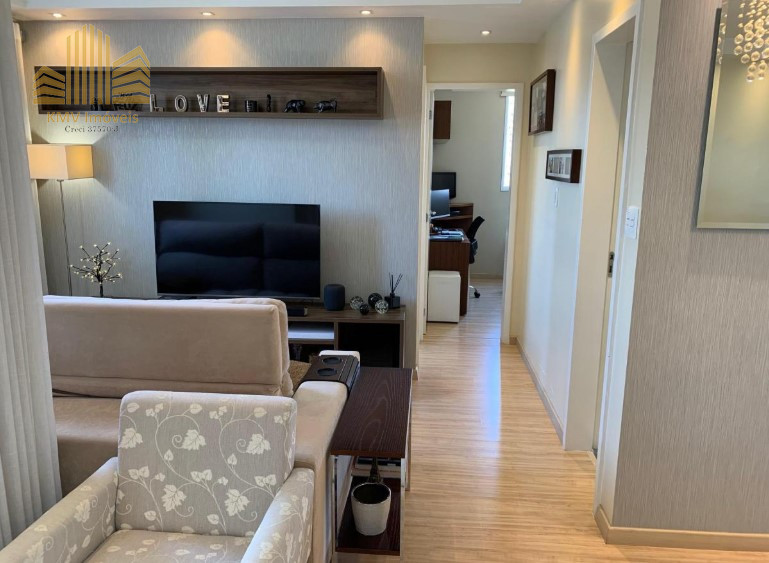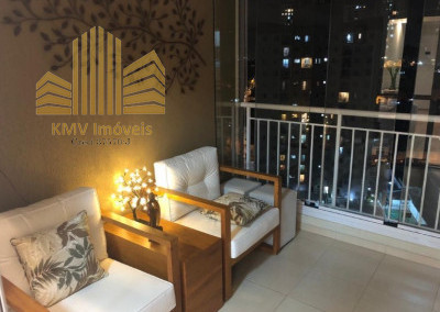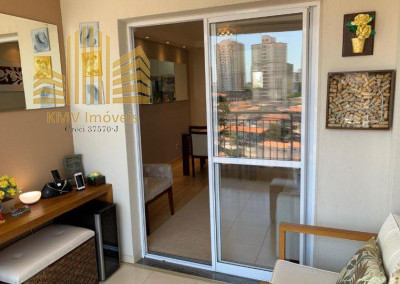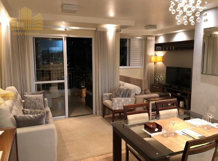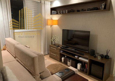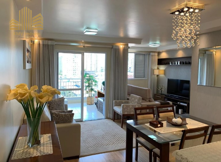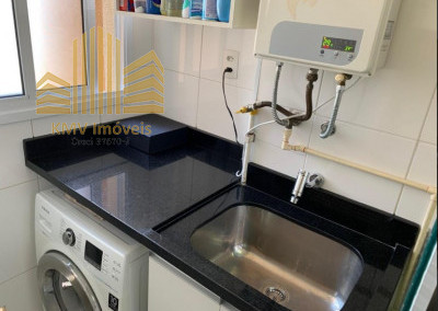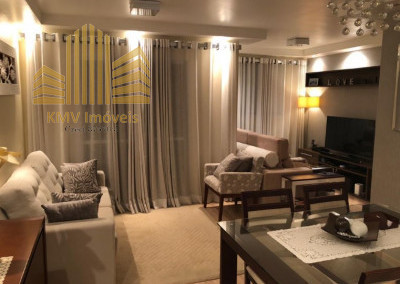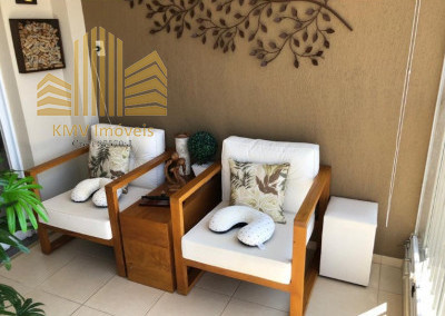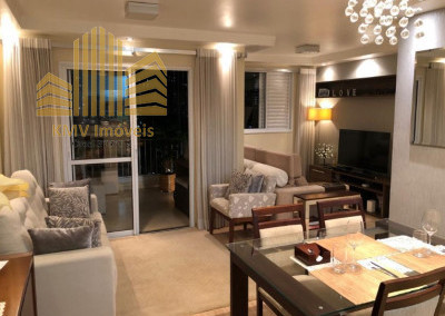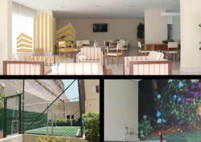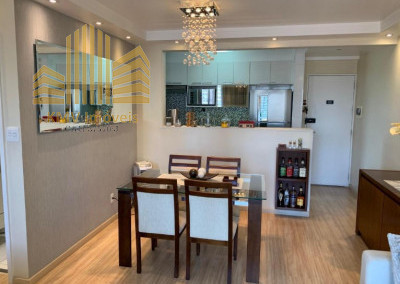 Sala de TV, sala de estar, sala de jantar, terraço, cozinha americana, área de serviço e 1 vaga de garagem coberta.