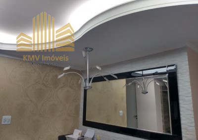 O imóvel possui 2 dormitórios com armários, sala 2 ambientes com sacada, um banheiro com box, área de serviço e 2 vagas de garagem coberta.