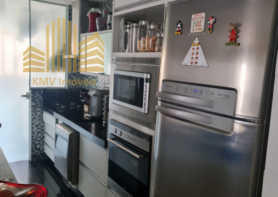 2 dormitórios com armários, sendo 1 suíte, sala ampla 2 ambientes com sacada, cozinha repleta em armário, 67m2, com 2 vagas de garagem + 01 depósito.