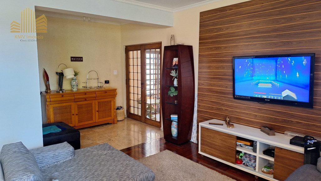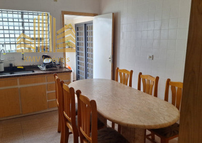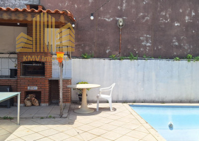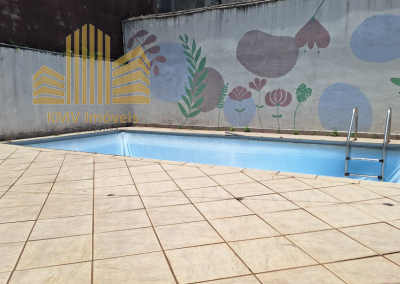 Imóvel com 3 quartos com armários sendo 2 suítes, lavabo, banheiro social com box, vaga para 5 carros com portão automático, sala de jantar, estar e sala de TV amplas, lavabo, cozinha com armários, área de serviço, quintal com entrada lateral, dependencia de empregada com banheiro. churrasqueira e piscina.