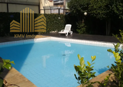 O condomínio possui área de lazer com piscina, playground e salão de festas.