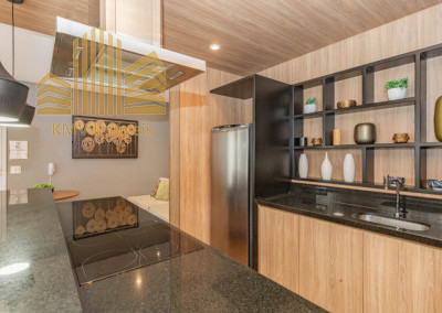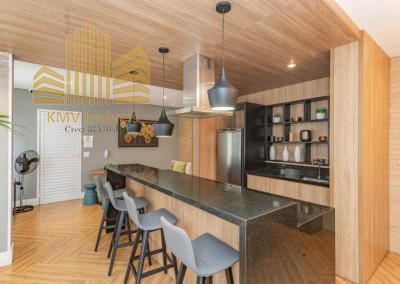 O imóvel possui armários planejados na cozinha, nos banheiros e no quarto suíte, o outro dormitório foi transformado em escritório porém passível de se transformar em dormitório comum, além de piso em porcelanato de alta qualidade por todo o apartamento, com o diferencial da impermeabilização completa antes da instalação do porcelanato, permitindo a lavagem dos pisos.