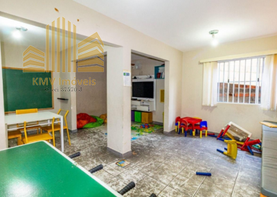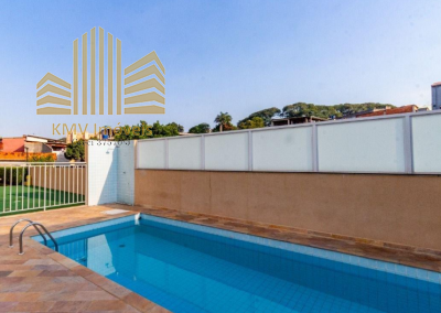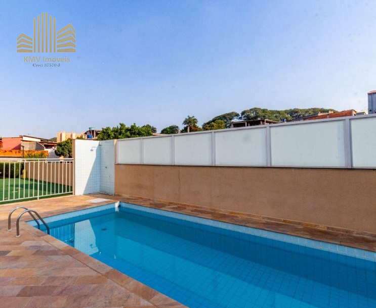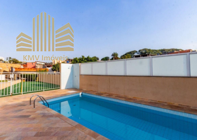 Condomínio com piscina, churrasqueira, salão de festas e playground.