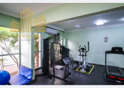 Condomínio conta com playground, quadra poliesportiva, academia, salão de festas, churrasqueira e mini mercado.