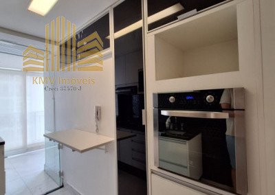 Cozinha repleta em armários planejados, forno, exaustor. Área de Serviço com armário.