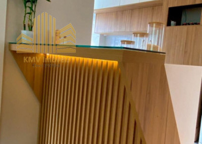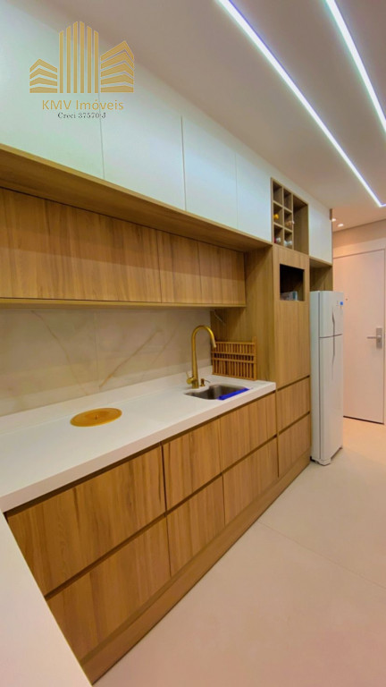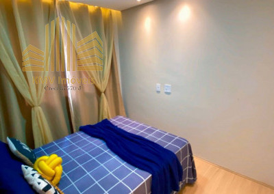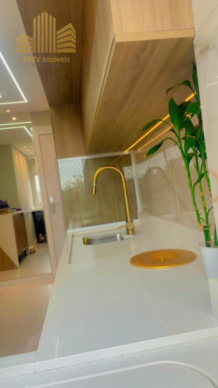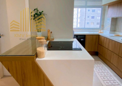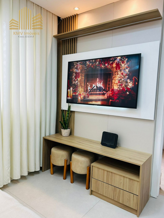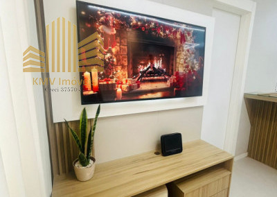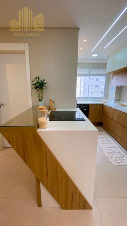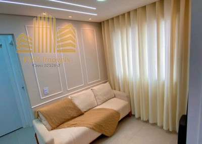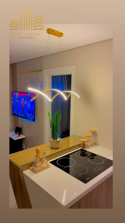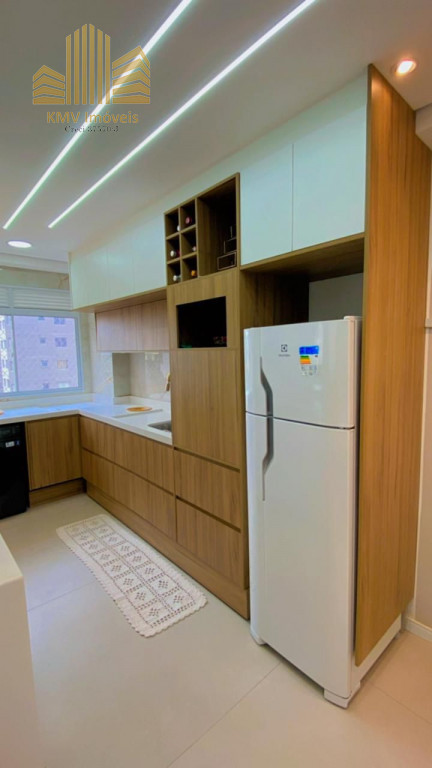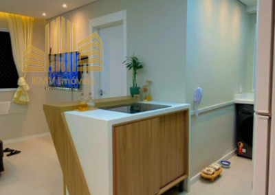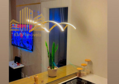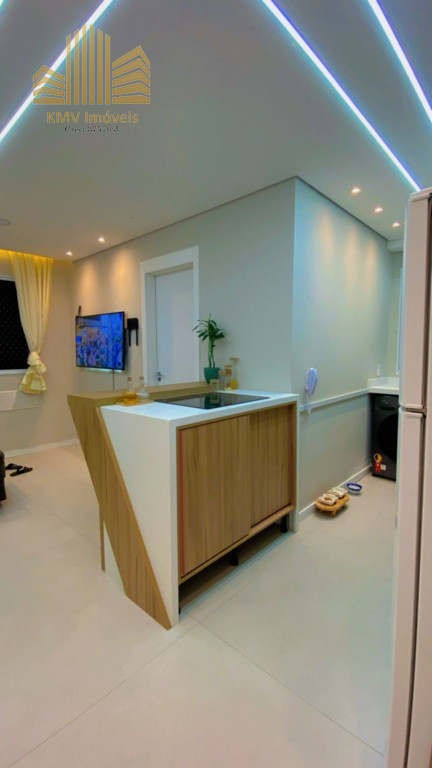 Belíssimo apartamento com 2 dormitórios, cozinha com armários planejados, revestida com cooktop, área de serviço com armários planejados, banheiro, sala 2 ambientes, todo em teto rebaixado decorado.