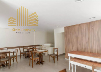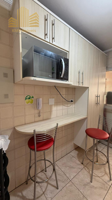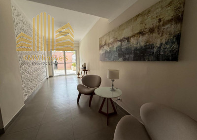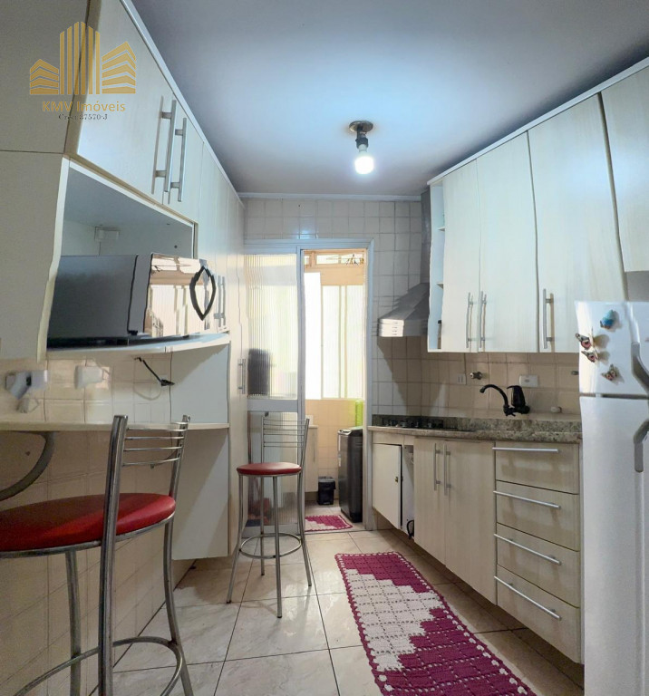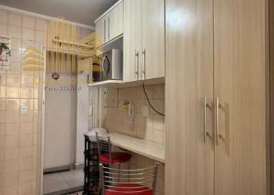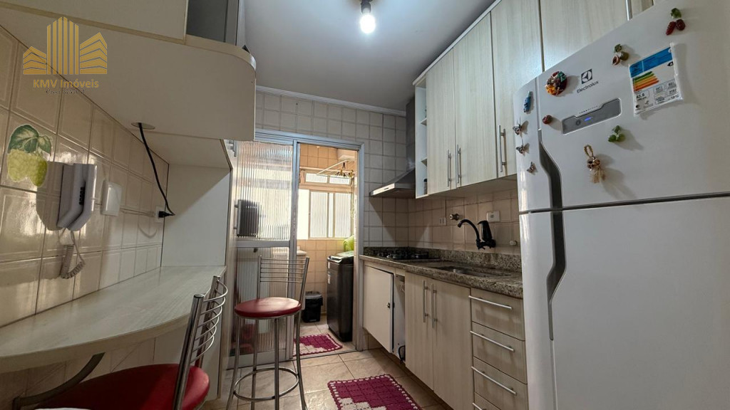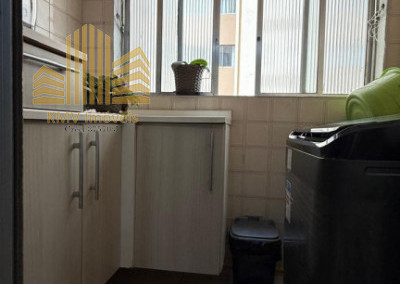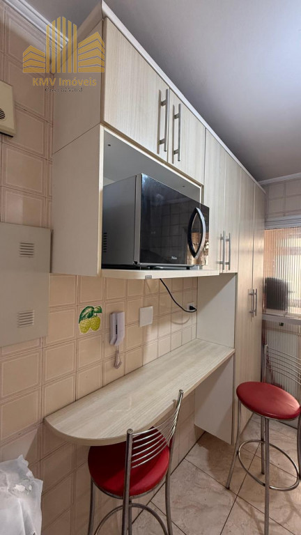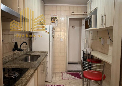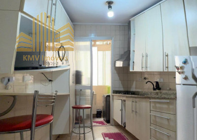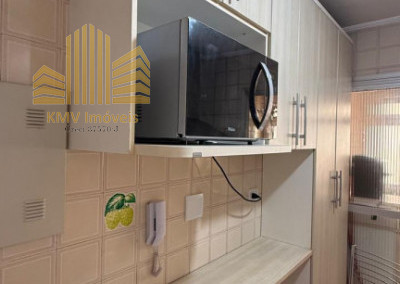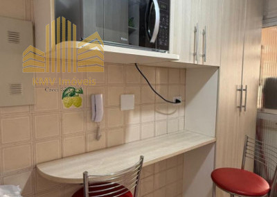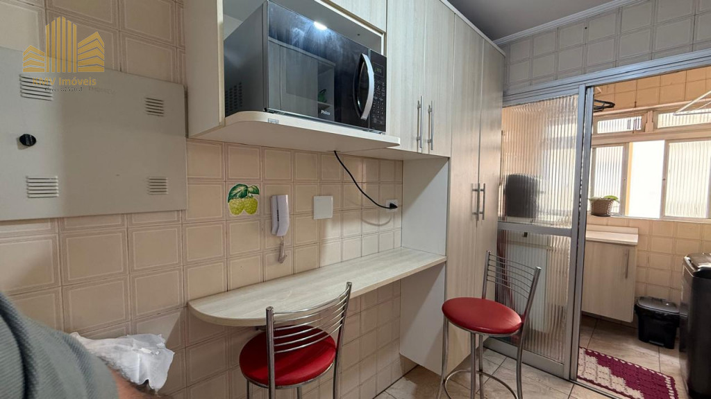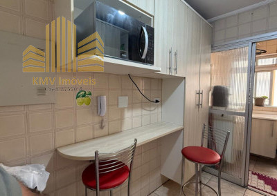 2 dormitórios, todo mobiliado, com armários planejados, 1 banheiro com pia, armários embutidos, box, sala de visita com home theater e sofá planejado de canto, sala de jantar com mesa de vidro com suporte em mármore e 4 cadeiras, cozinha com armários embutidos, mesinha com 2 banquinhos, forno e fogão embutidos, coifa, lavanderia com armários embutidos, incluindo tábua de passar dobrável.