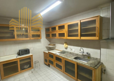 Apartamento com 3 dormitórios com armários planejados sendo 1 suíte, sala ampla com 3 ambientes com sacada, cozinha grande repleta em armários planejados, área de serviço com armários, banheiro de empregada (no momento transformado em despensa), 3 banheiros no total com ventilação natural, sendo 2 com box, 2 vagas de garagem determinadas.