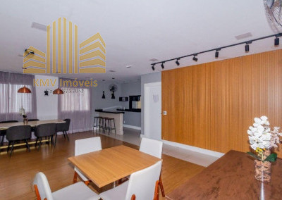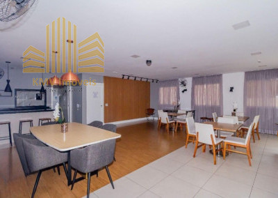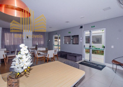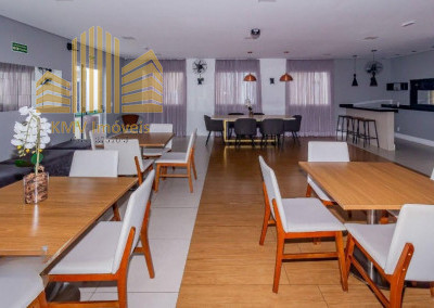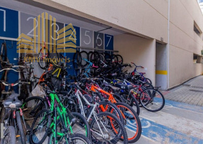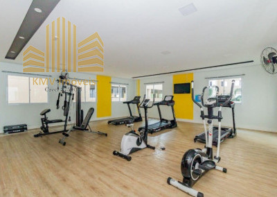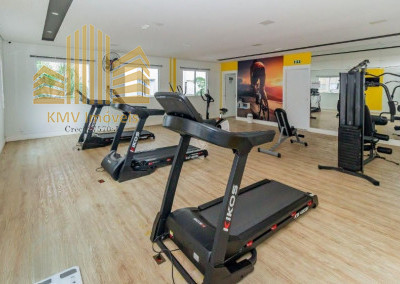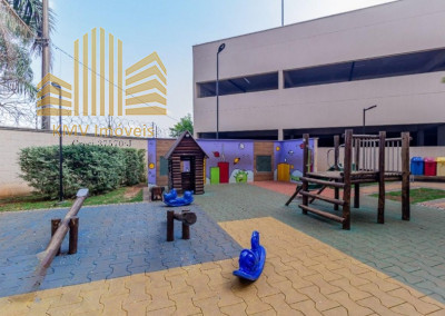Lazer com churrasqueira, academia, brinquedoteca, playground, salão de festas.