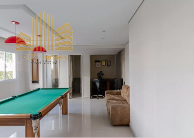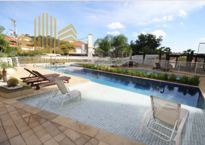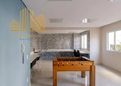 O condomínio tem área de lazer composta por piscina, academia, salão de festas, brinquedoteca, playground, jardim, churrasqueira, quadra e salão de jogos.