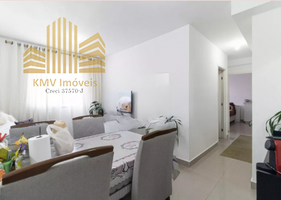 Apartamento de 2 dormitórios, sala com janela ampla, cozinha com armários planejadas, lavanderia, 1 banheiro com box de vidro e 1 vaga de garagem.