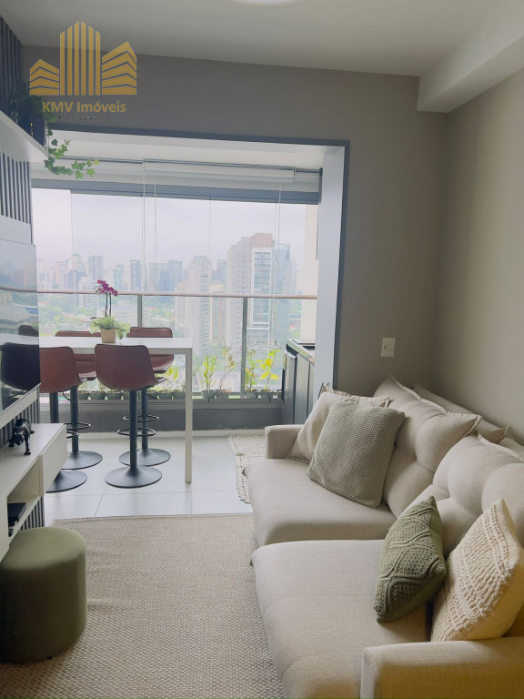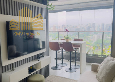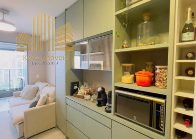 Maravilhoso apartamento de 1 dormitório, todo mobiliado com armários planejados, bela sala com sacada, banheiro com box, cozinha moderna com armários e com 1 vaga de garagem com depósito no subsolo.