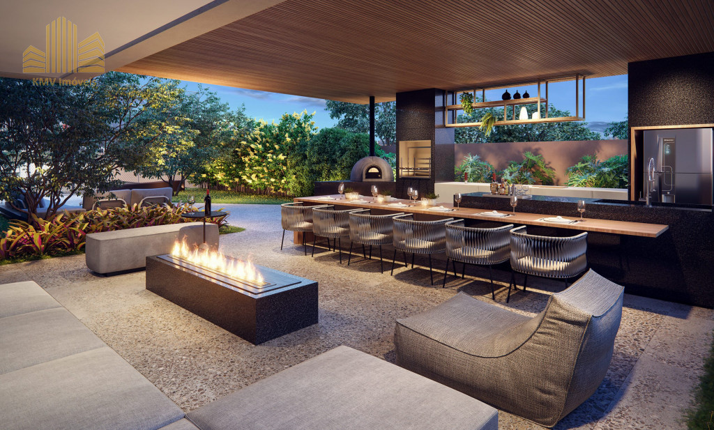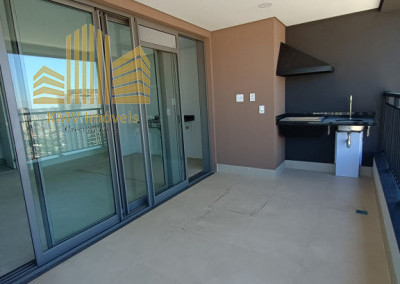 Uma das características marcantes deste apartamento é a varanda gourmet, que oferece um espaço agradável para momentos de relaxamento ou para receber amigos.