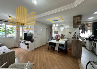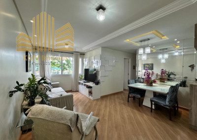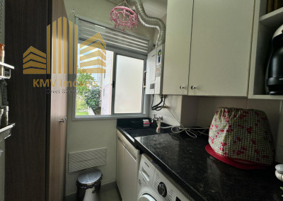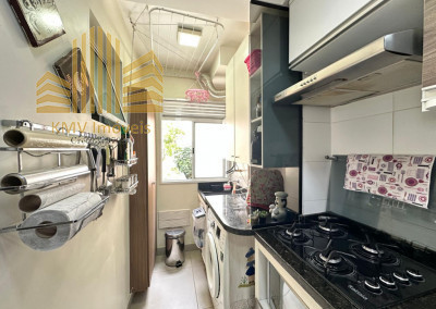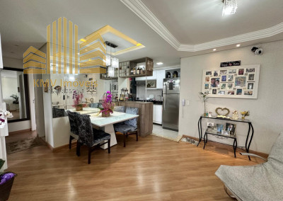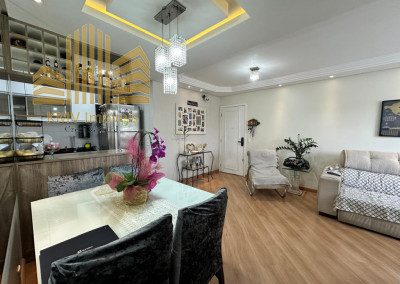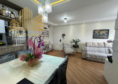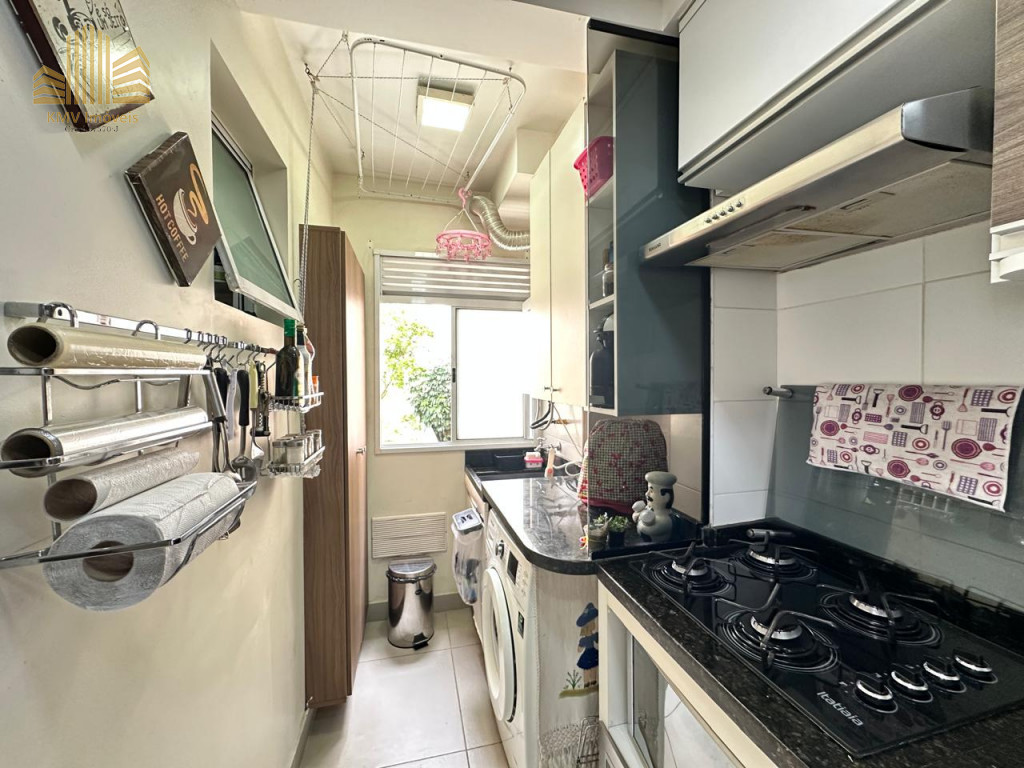 Apartamento de 3 dormitórios com armários sendo um closet, sala ampla de 2 ambientes, cozinha com armários, banheiro com box, área de serviço com armários e 1 vaga de garagem. Sendo vendido já com geladeira, sofá, armários planejados, guarda roupa e balcão.