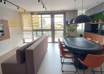 Com dois quartos bem distribuídos com armários planejados e ar condicionado, cozinha com armários, sala 2 ambientes com sacada gourmet, 1 vaga de garagem.