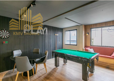 Lazer com academia, churrasqueira, piscina, playground, salão de festas, salão de jogos, saúna.