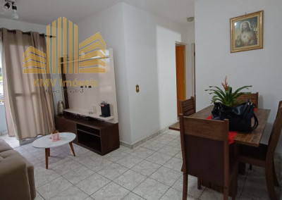 Apartamento de 2 dormitórios amplos, 1 banheiro, sala 2 ambientes com sacada, cozinha com armário e lavanderia e com 1 vaga de garagem.