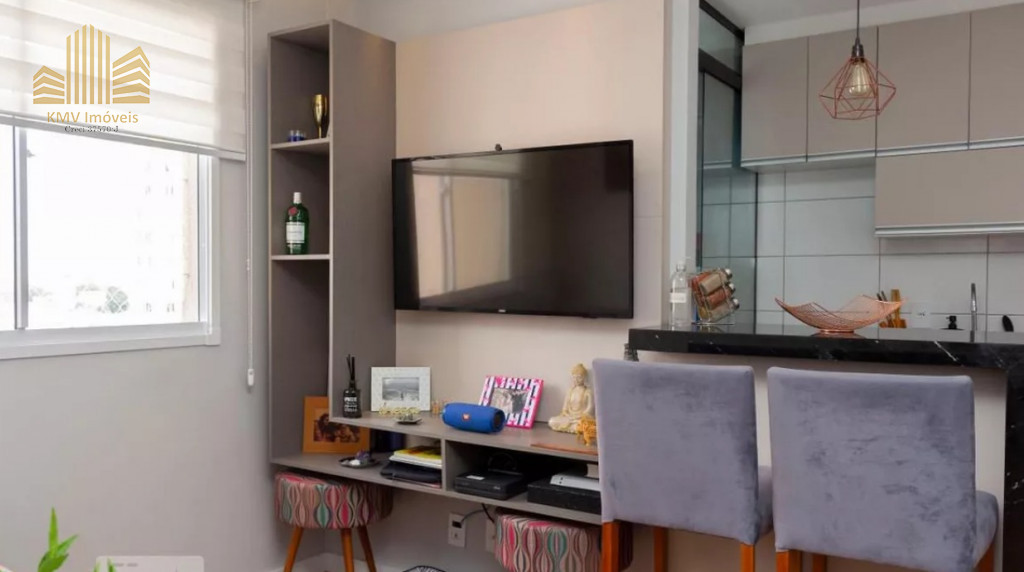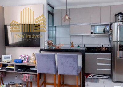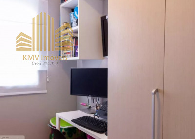 Deslumbrante apartamento totalmente reformado, com acabamentos de alto padrão e móveis planejados sob medida em todo imóvel, sendo cozinha com armários planejados, balcão estilo americano em mármore, armário embutido e sistema de água quente, 2 dormitórios com armários planejado e mesa de escritório integrada, área de serviço com armários, janelas com tela de proteção, sala 2 ambientes, portaria 24 horas, e 01 vaga de garagem.