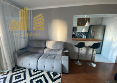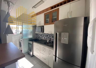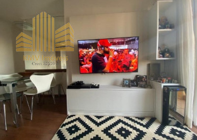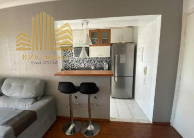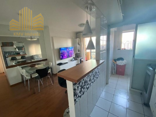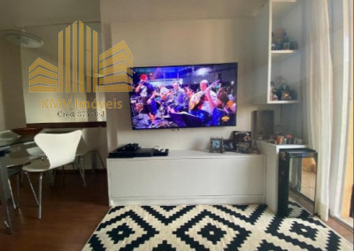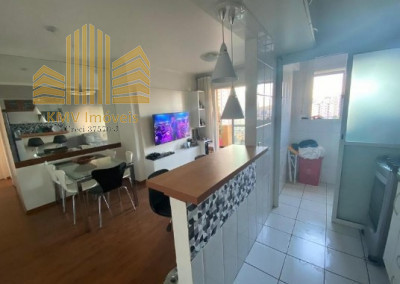 Apartamento muito bem decorado, sendo 02 belos dormitórios com armários embutidos, sala ampla com sacada toda ela em piso de madeira, integrada com uma bela cozinha estilo americano com bancada frontal toda planejada, banheiro modernizado, área de serviço ampla, 01 vaga de garagem...