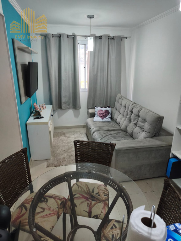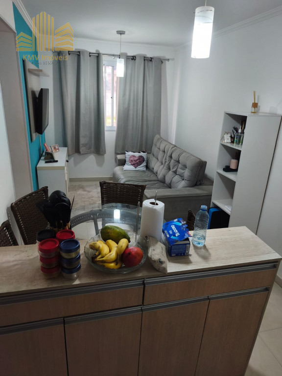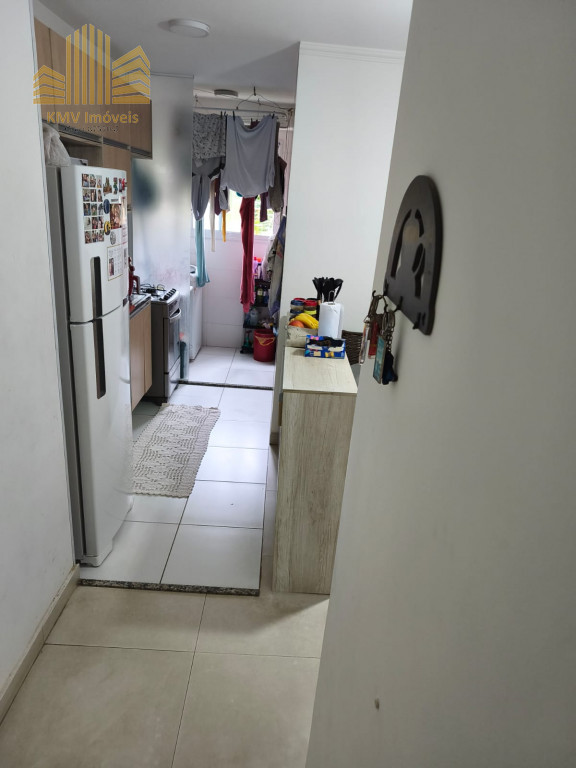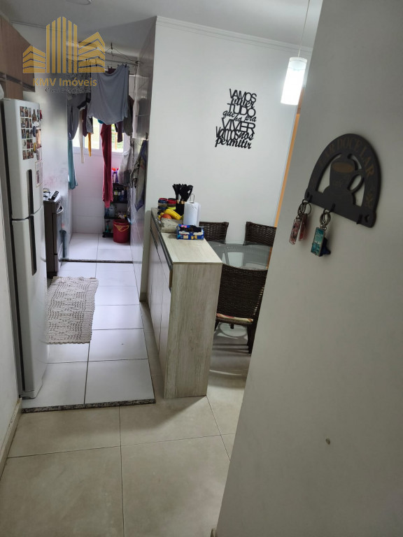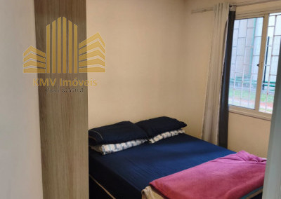 Apartamento de 2 dormitórios, 1 banheiro, sala com uma janela ampla que traz iluminação natural ao ambiente, cozinha com lavanderia.