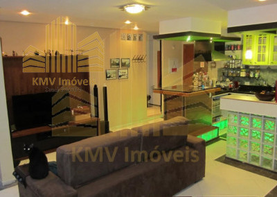com sala, lareira, 2 dormitórios sendo 1 suíte, 2 banheiros, cozinha com coifa de inox e fogão de vidro, balcão com gaveteiros, armário para louças, lavanderia.